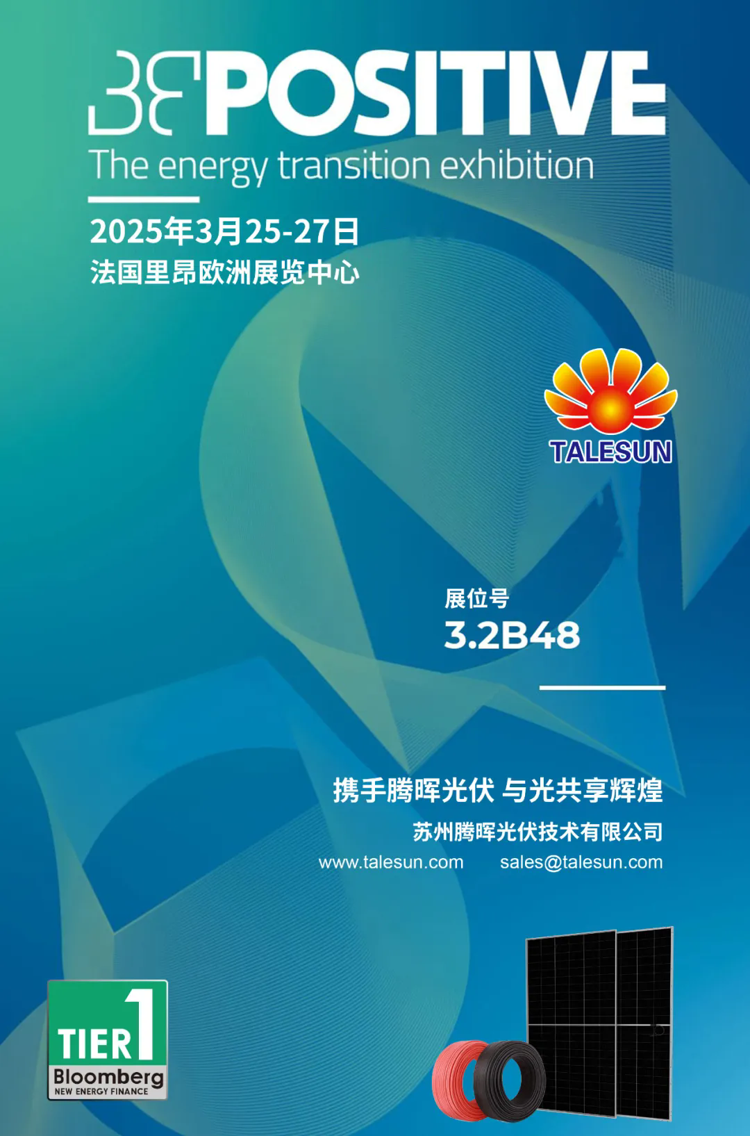 陽(yáng)春三月,萬(wàn)物生暉。正值全球能源轉(zhuǎn)型邁向深化之年,騰暉光伏(Talesun Solar)將于2025年3月25日同步亮相法國(guó)里昂BePOSITIVE能源展、南非約翰內(nèi)斯堡Solar & Storage Show Africa及美國(guó)達(dá)拉斯Energy Storage Summit USA三大國(guó)際能源盛會(huì)。這場(chǎng)橫跨歐、非、美三大洲的聯(lián)動(dòng),恰似春風(fēng)化雨,以區(qū)域深耕之姿串聯(lián)全球能源生態(tài),展現(xiàn)企業(yè)從成熟市場(chǎng)到新興前沿的戰(zhàn)略縱深。
