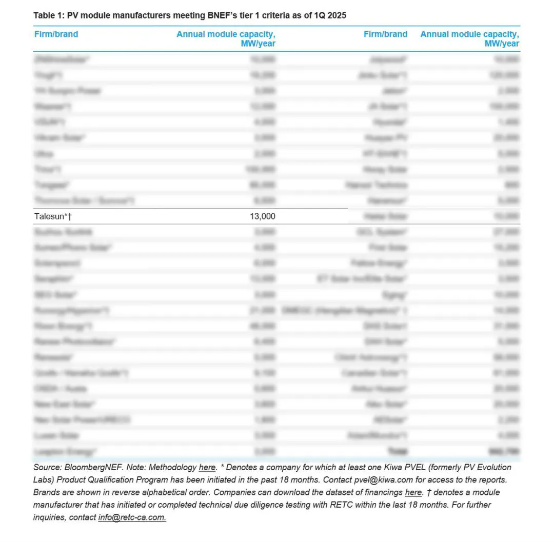 近日,全球知名研究機(jī)構(gòu)彭博新能源財經(jīng)(BNEF)發(fā)布了2025年第一季度Tier1全球一級組件制造廠商榜單,騰暉光伏憑借卓越的技術(shù)創(chuàng)新能力、穩(wěn)健的財務(wù)表現(xiàn)及全球市場影響力成功入選該榜單。