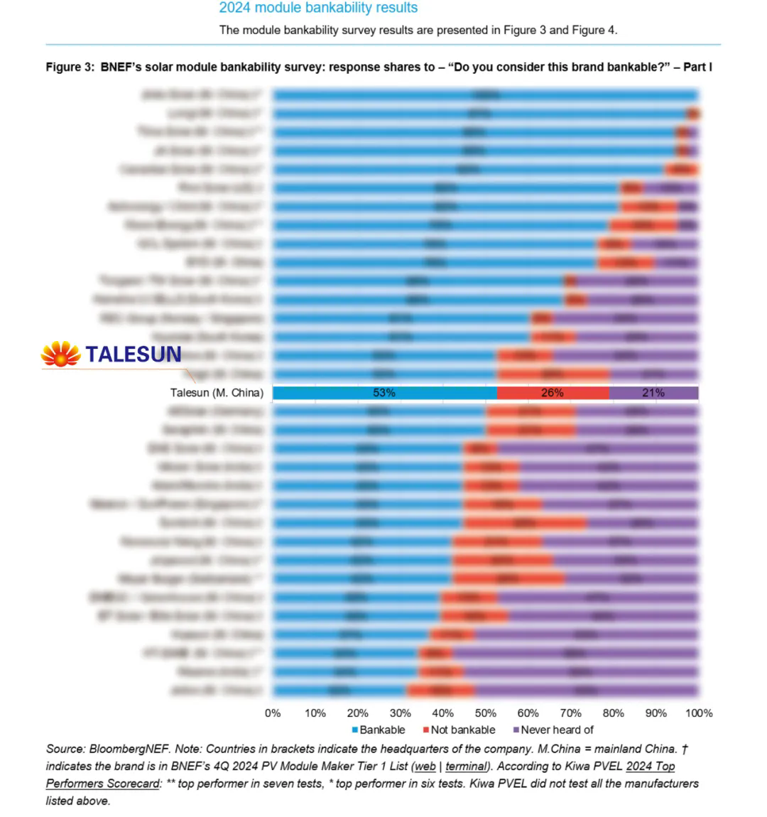 近日,全球知名研究機構彭博新能源財經(jīng)(BNEF)公布了《2024年光伏組件和逆變器可融資性調(diào)查報告》(PV Module and Inverter Bankability 2024)?,騰暉光伏憑借穩(wěn)健的財務表現(xiàn)與良好的企業(yè)商譽排名前列。這一權威認證不僅是對騰暉光伏產(chǎn)品可靠性與品牌價值的充分肯定,更標志著我們的組件已成為全球金融機構與投資者眼中“低風險、高價值”的綠色資產(chǎn)標桿。